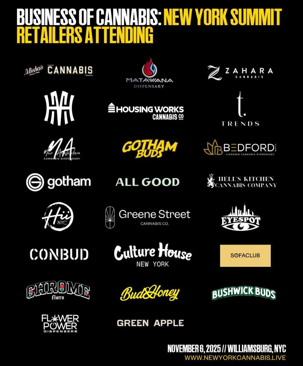 Misha’s • Matawana • Zahara • Housing Works • Hell’s Kitchen Co. • Gotham • Gotham Buds • Bedford • Greene Street • All Good • CONBUD • Bud Honey • Flower Power • Bushwick Buds • Green Apple • Chrome Flwrz • Culture House NY • SOFA Club • t. Trends • Hi NYC